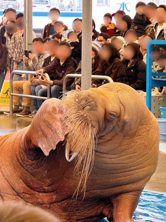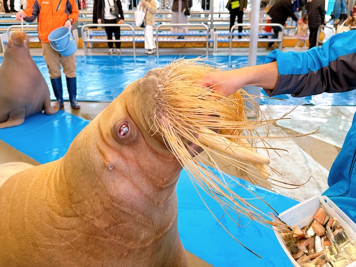 「ショーの後半ではね、皆さんに実際にセイウチに触っていただこうと思います」