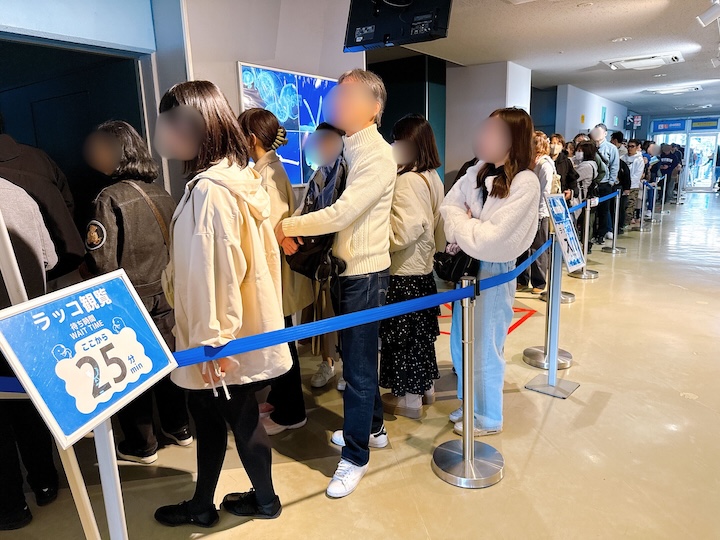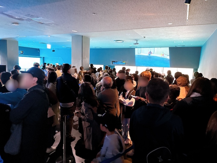 さて、極地の海コーナの見学を終えてブースを出ると、ラッコ見学待ち行列がさらに伸びています。