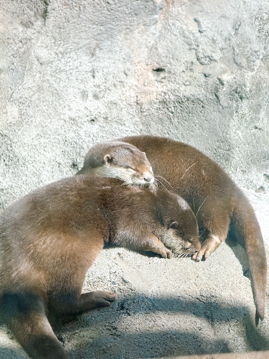 そのお隣ではわちゃわちゃじゃれあうコツメカワウソ。
