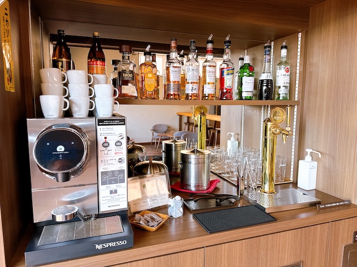 ラウンジにはネスプレッソマシンもあり、様々なコーヒーをセルフで楽しめます。