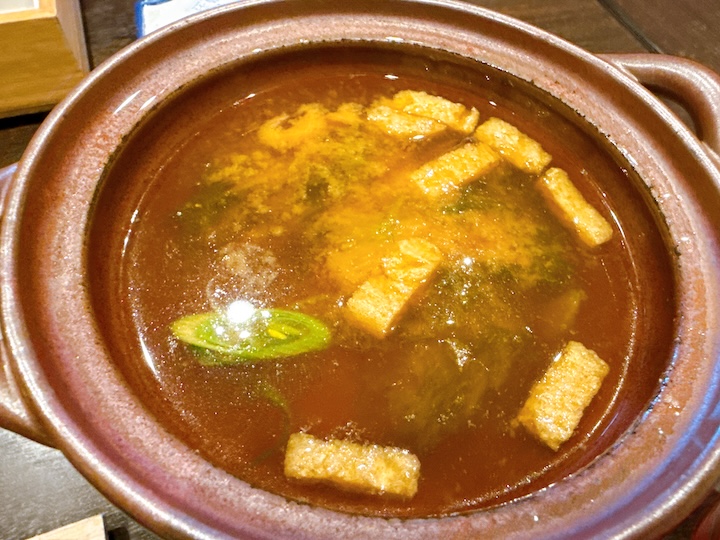 赤味噌ベースのお味噌汁でした。
