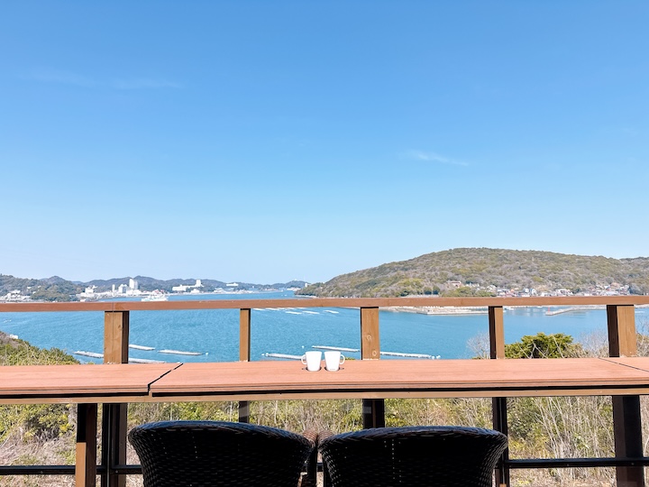 伊勢湾の雄大な景色を眺めながら飲むコーヒーは格別。