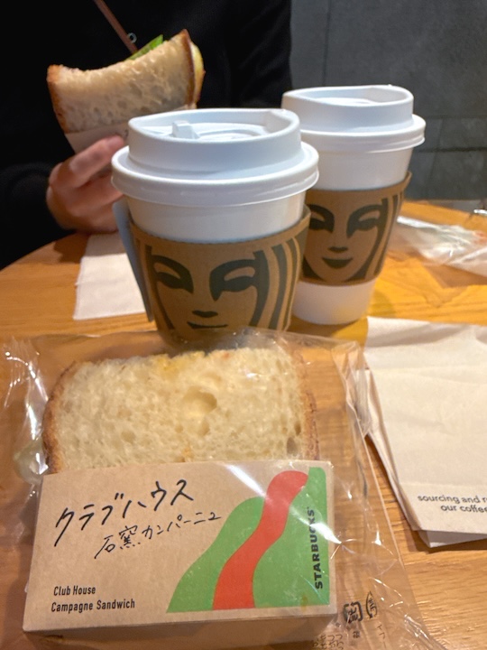 まずは京都駅構内のスタバで朝食。