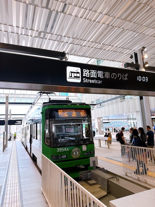 路面電車の乗り場が駅2階にあるのが不思議な感じです。