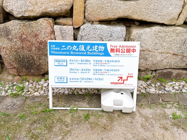 二の丸復元跡は無料で入場可能。