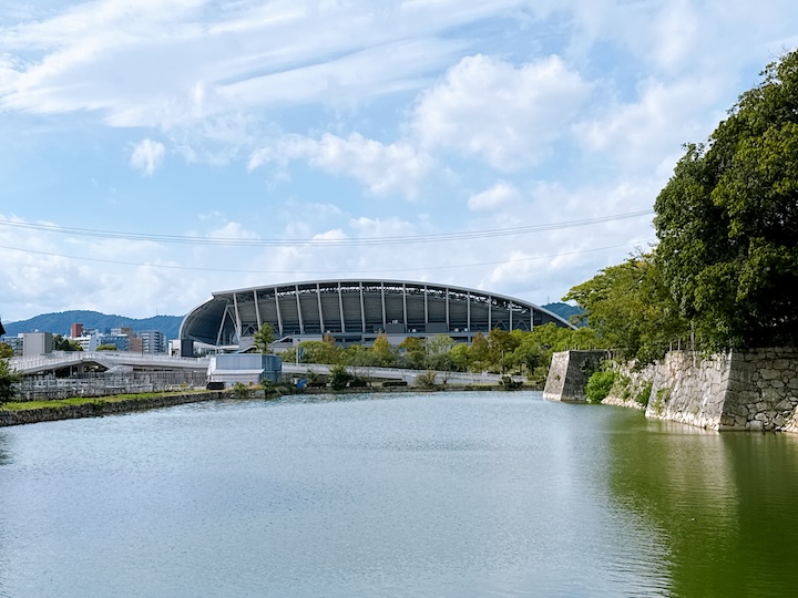 お城のすぐそばにはサンフレッチェ広島のホームスタジアム「エディオンピースウイング広島」が見えています。
