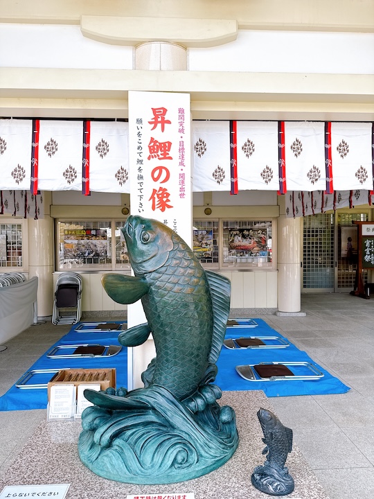 本殿には昇鯉の像。