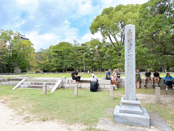 真ん中の存在感のある石は、広島城で最も大きな石垣の石とのこと。